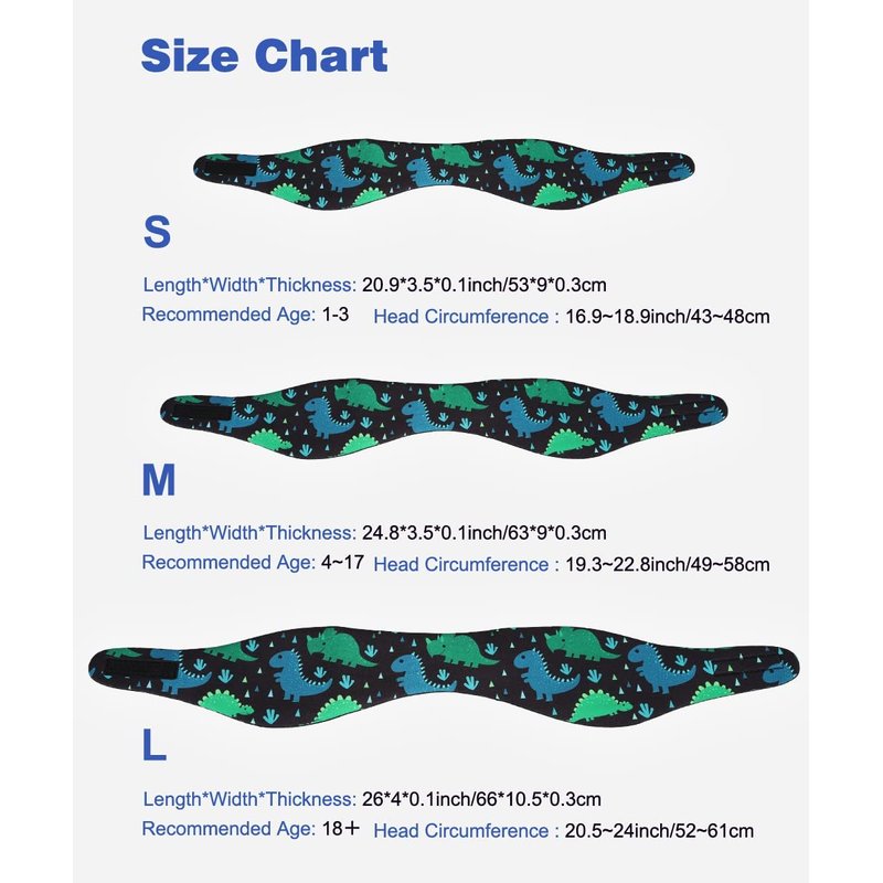 - THREE SIZES AVAILABLE: S Size: 53.34cm/21inch Suitable for 1-3 years old kids whose head circumference is about 16"-17.5". M Size: 63cm/24.8inch Suitable for 4-17 years old kids whose head circumference is about 17.5"-19.4". L Size: 66cm/25.98inch Suitable for 18+ years old kids and adults whose head circumference is about 19.5"-22.5". With Hook and Loop fastener, it is easy to put on or take off.