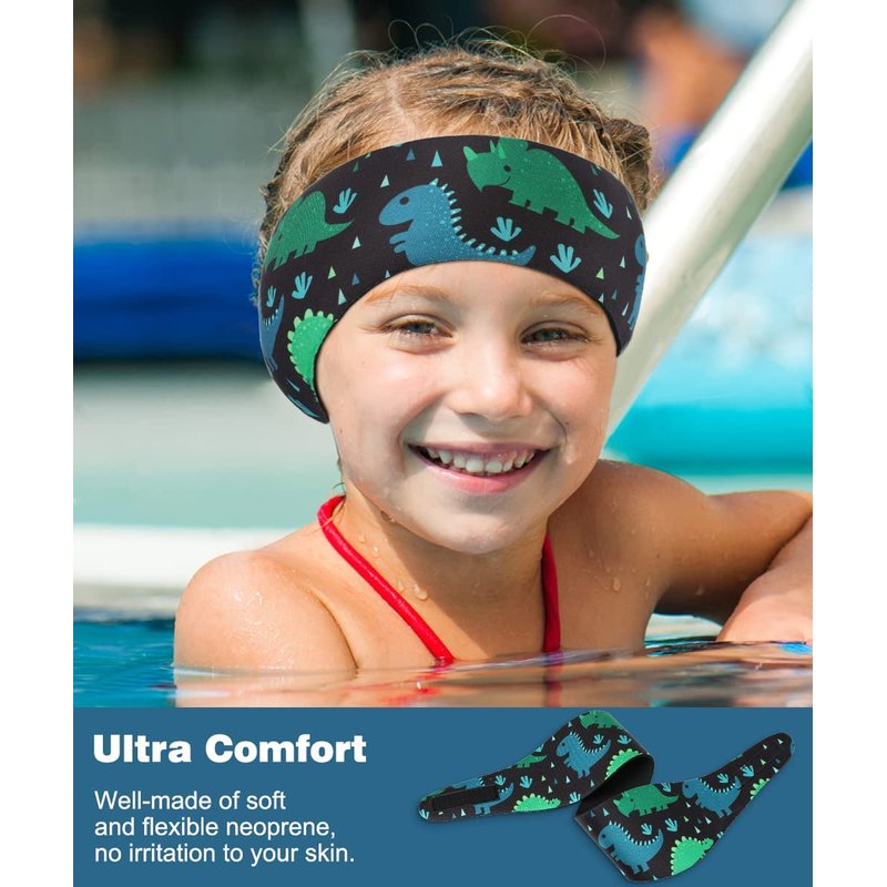 MoKo Swimming Headband for Kids, Cute Swinmmers Headband Ear Band for Kids Keep Water Out Waterproof Ear Protection Band for Bathing Swimming Ear Band for Kids Age 1-3 S Size, Blue Rhino Dinosaur