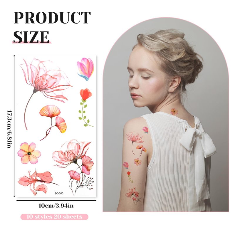 - 【Floral Temporary Tattoo Set】There are 20 sheets flower tattoo stickers in each package, pattern include rose lily and various flowers, you can used these tattoos for arms, shoulders, back,chest, legs,neck and worn any where on your body. Designed specifically for women, these trendy tattoo stickers are the perfect accessory to complement your outfit and make a bold statement.