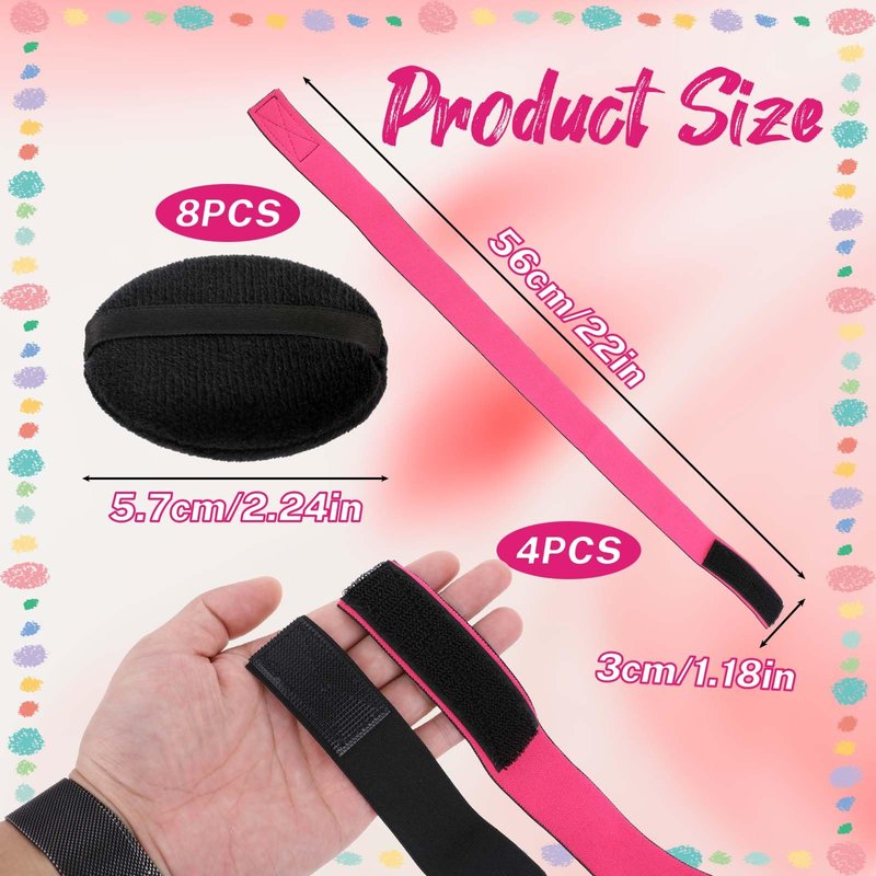 Packing list: 4 black wig elastic hair ties, 2 powder puffs each