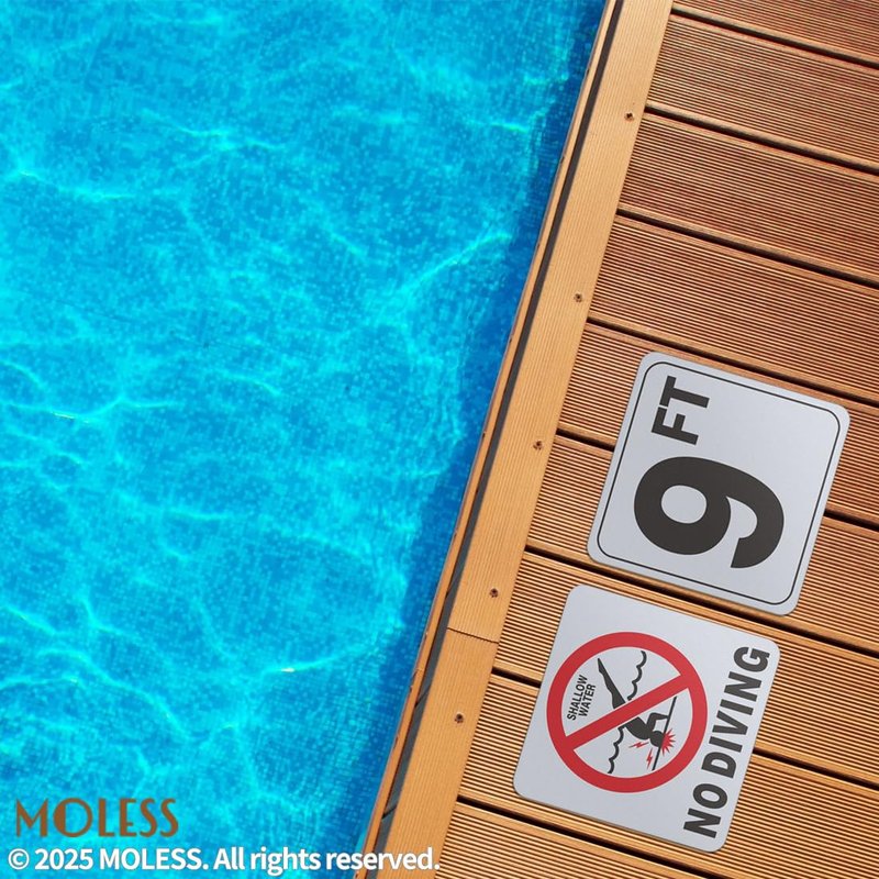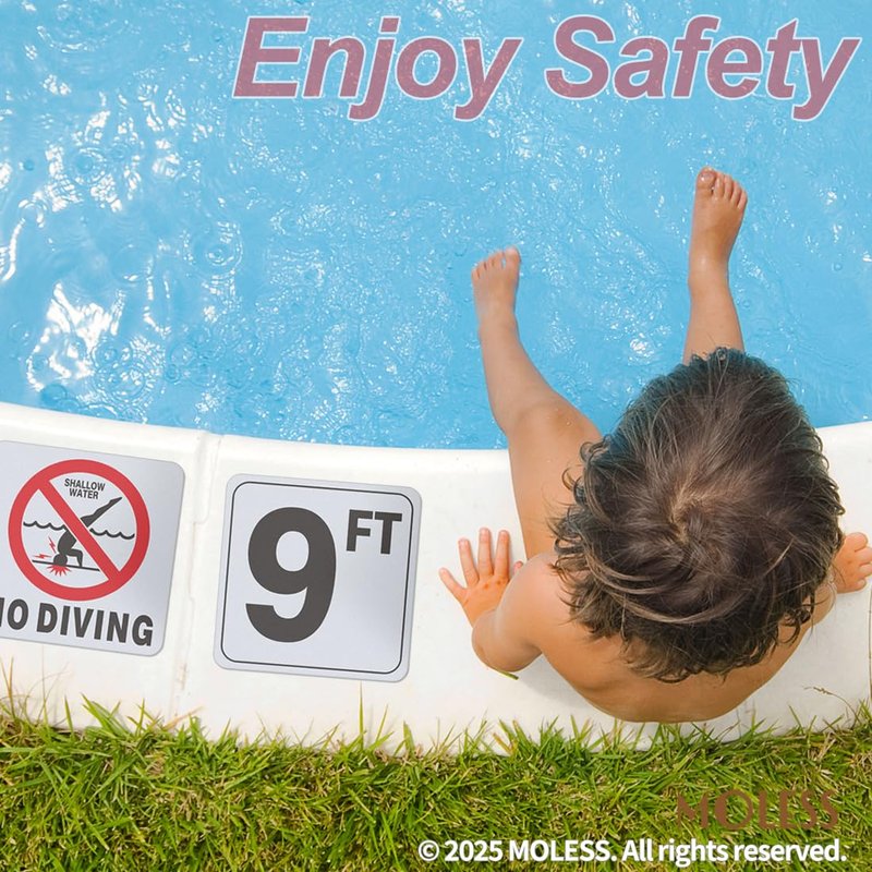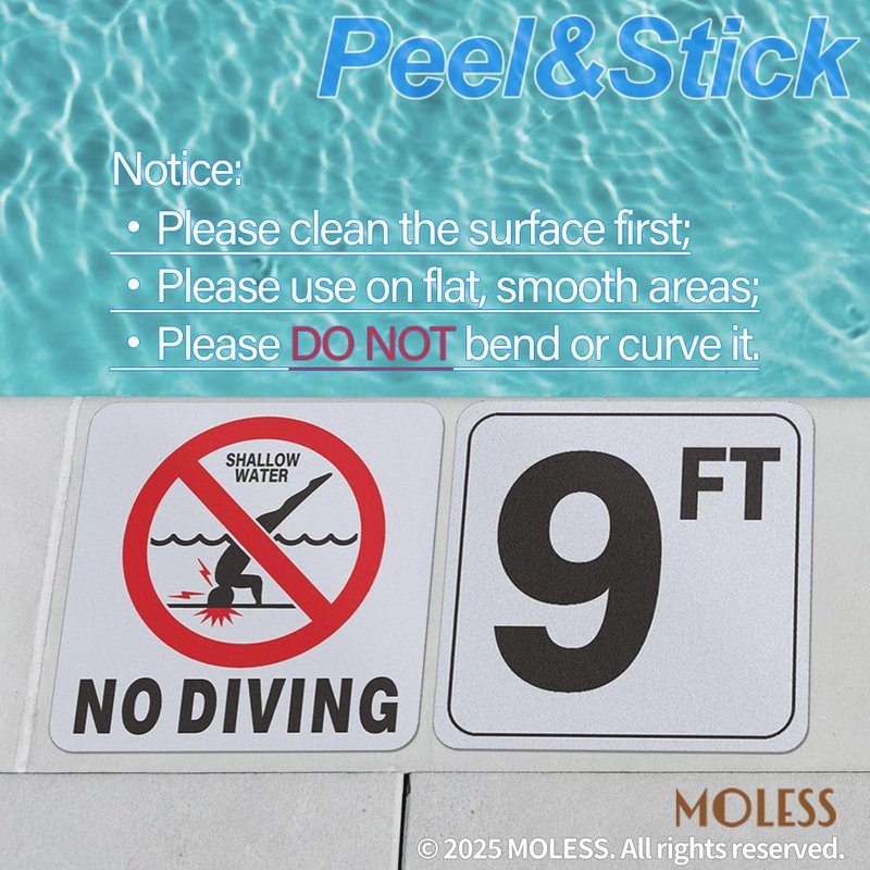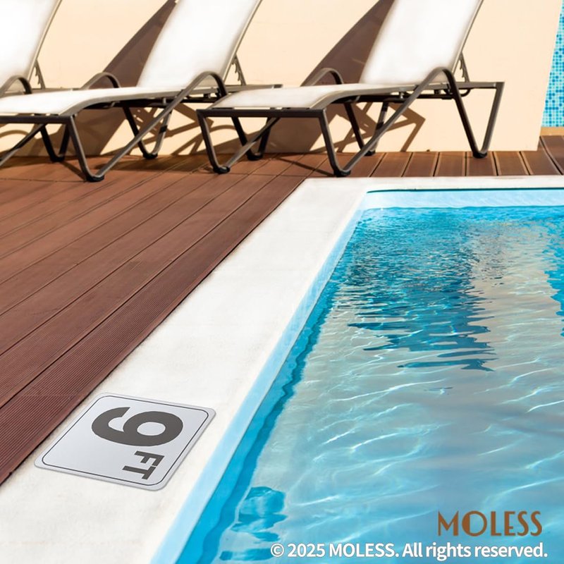 MOLESS 9FT Pool Depth Marker Stickers – 6x6″ Anti-Slip Vinyl Tile Stickers for Swimming Pool Safety Signs, Adhesive Pool Depth Markers for Decks, 9 FT (1 Pack)