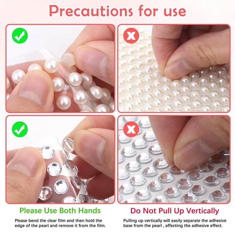- 【USE NOTE】: Clean the stuck surface before use and make the surface clean, dry, dust-free, and oil-free, which can make the pearls stick better. When stuck on the face or hair, it can be reinforced with makeup glue.