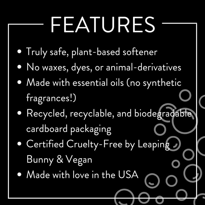 - INSPIRED BY NATURE: Made with essential oils derived from Mother Earth, certified Cruelty-Free by Leaping Bunny and Made in the USA. Our dryer sheets are free of waxes, dyes, harsh fragrances, and animal derivatives. The only thing you will experience are baby soft clothes that smell light and airy