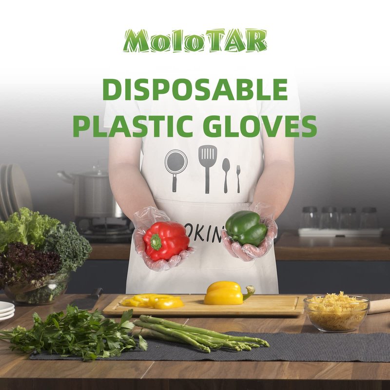 MoloTAR 100 pcs Plastic Disposable Gloves,Disposable Gloves, One Size Fits Most