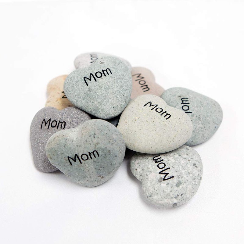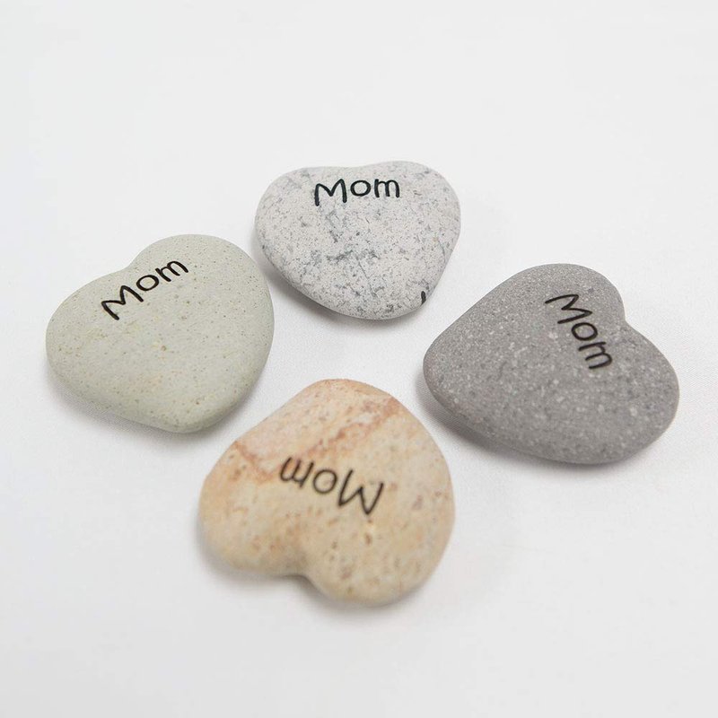 Mom Engraved Stone Heart Shaped Inspirational Sandblast Stone, Perfect Gorgeous Mothers day Birthday Unique Gift Ideas, Natural Beach Pebble Rock