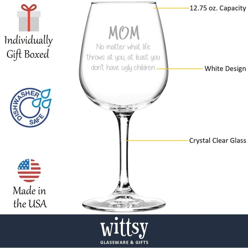 Mom No Matter What, Ugly Children Funny Wine Glass - Birthday Gifts for Mom, Women, Wife - Best Mom Gifts from Son, Daughter, Kids - Cool Bday Present Idea for Her - Novelty Mom Wine Gift