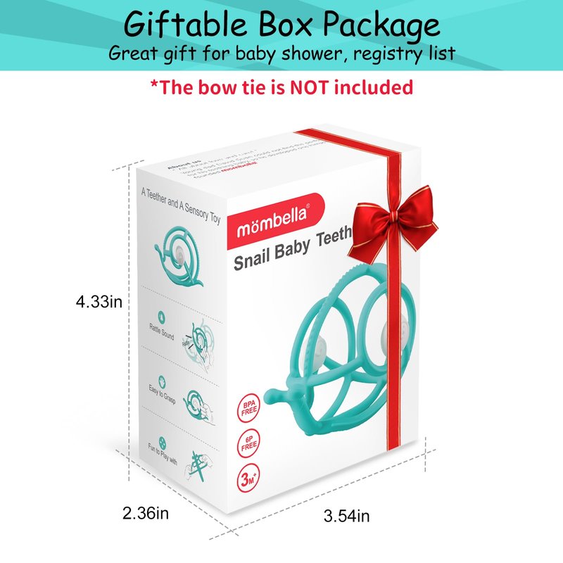 Mombella Teething Toys 6-12 Months, 2 in 1 Snail Baby Teether & Rattle Toys 3-6 Months, Silicone Infant Teethers for Babies 12-18 Months, Newborn Sensory Teething Toys, BPA Free Baby Chew Toy, Teal