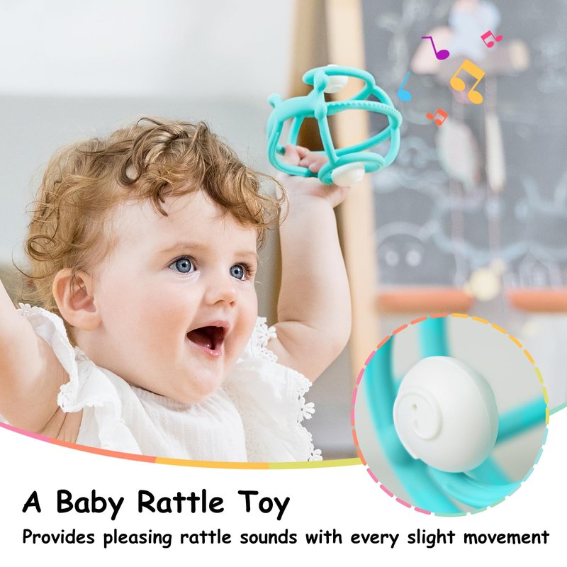 - 2 in 1 BABY TEETHER & RATTLE TOYS. The Snail provides a quiet but pleasing baby rattle sounds with every slight movement. The sound is useful for attracting babies' attention and keep them occupied when they cry. Designed to soothe fussy infants and encourage interactive play.