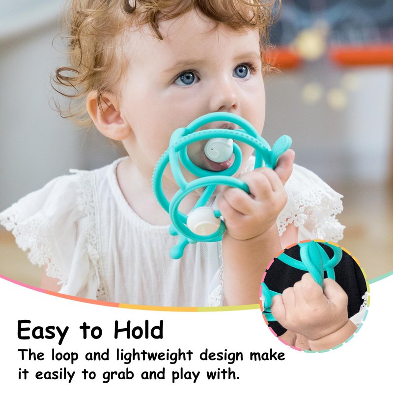 - TEETHING TOYS FOR 3-18 MONTHS. The different textures on the tail and back message teething baby's gums and relieve teething pain and itch. The eyes privides a soothing experience. The super soft stretchy loops & tubes are perfect for tender gums to chew on.