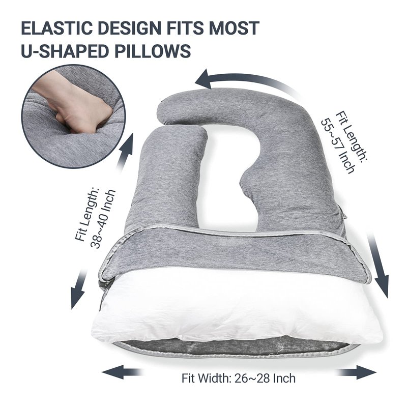 - Unique U-shaped Design: Momcozy U-shaped pillowcase measures 57 x 28 inches and provides some extra stretch to provide a neat, snug fit over most 55/57 inch U-shaped maternity pillows. Features an extra layer of softness, this pillow cover upgrades your pregnancy pillow with extreme comfort and convenience.