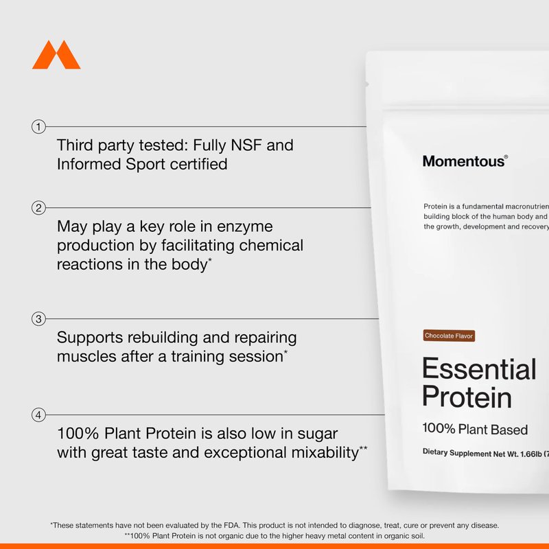 Momentous Essential Plant-Based Pea and Rice Protein Powder, Vegan, Gluten-Free, Non-GMO, NSF Certified, All Day Essential Use Protein Powder for Men and Women (Chocolate, Bag)