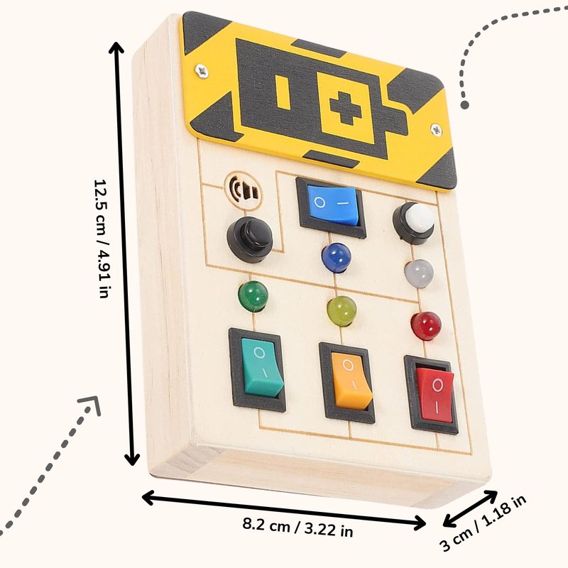- π Wooden busy board for toddlers, this busy board is specially designed for toddlers who love switches and LED lights, toddlers can use this toddler busy board to recognize different colors and sizes.