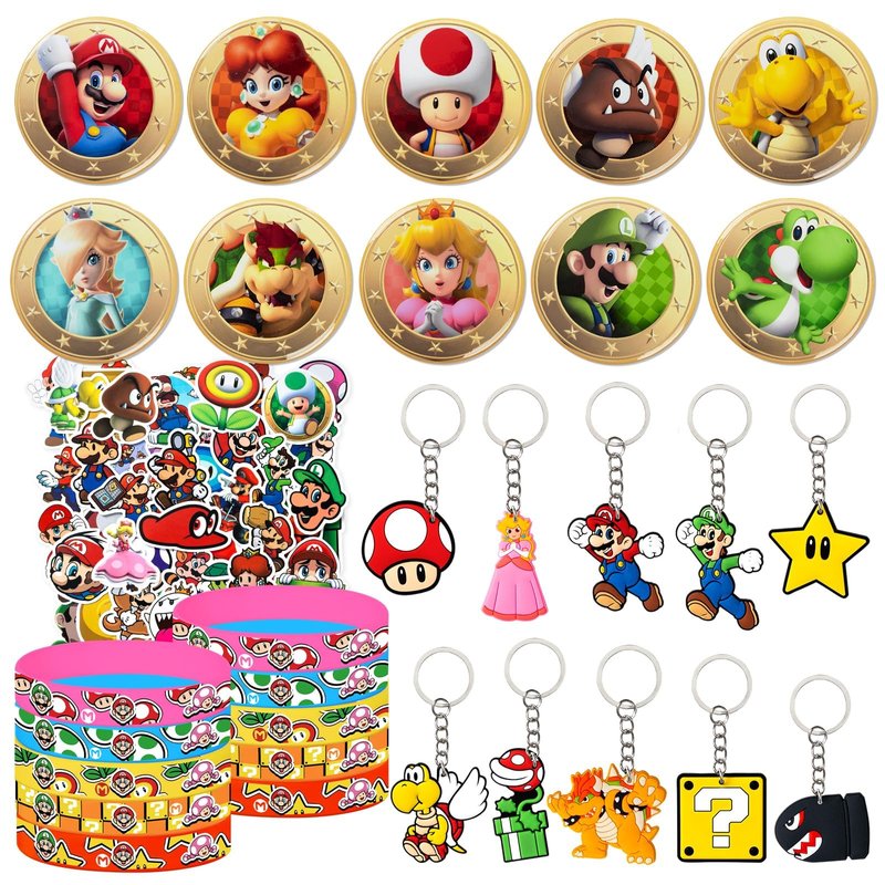 - SERVES 10+ :80 Pcs Party Favors Include 10 wristbands, 10 key chains, 10 pattern decorations and 50 Stickers for Kids, You can prepare gifts for 10 children at the same time.