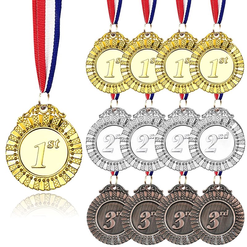 - ☛PACKAGE: One package includes gold awards with 1st , silver awards with 2nd and bronze awards with 3rd, 4 counts of each medal, with red, white and blue neck ribbon.