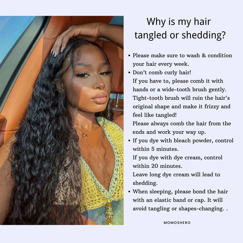 - 💙【Hair Care Tips】Please wash & condition your hair at least 1-2 times every week is even better. We don't suggest combing wavy and curly hair. If you have to, please comb it with hands or a wide-tooth brush gently. Tight-tooth brush will ruin the hair's original shape and make it frizzy and feel like tangled!