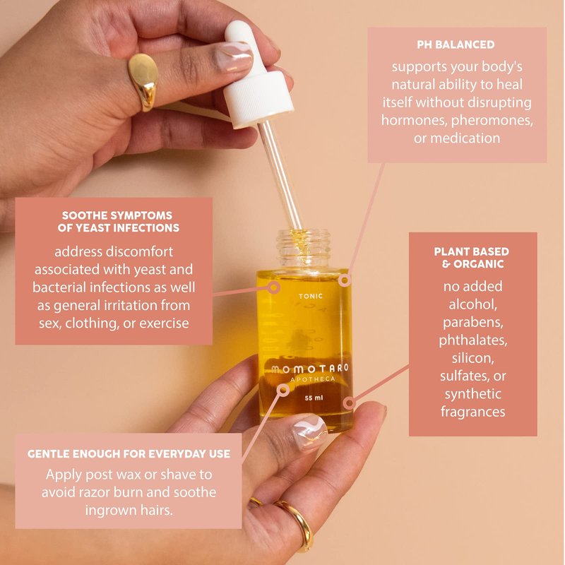 Momotaro Apotheca Tonic Bath + Body Oil Concentrate and spot treatment - For Discomfort from BV & Yeast Infection Support, Razor Burn, & Ingrown Hairs with soothing Jojoba oil base - 55 ml | 1.9 fl oz