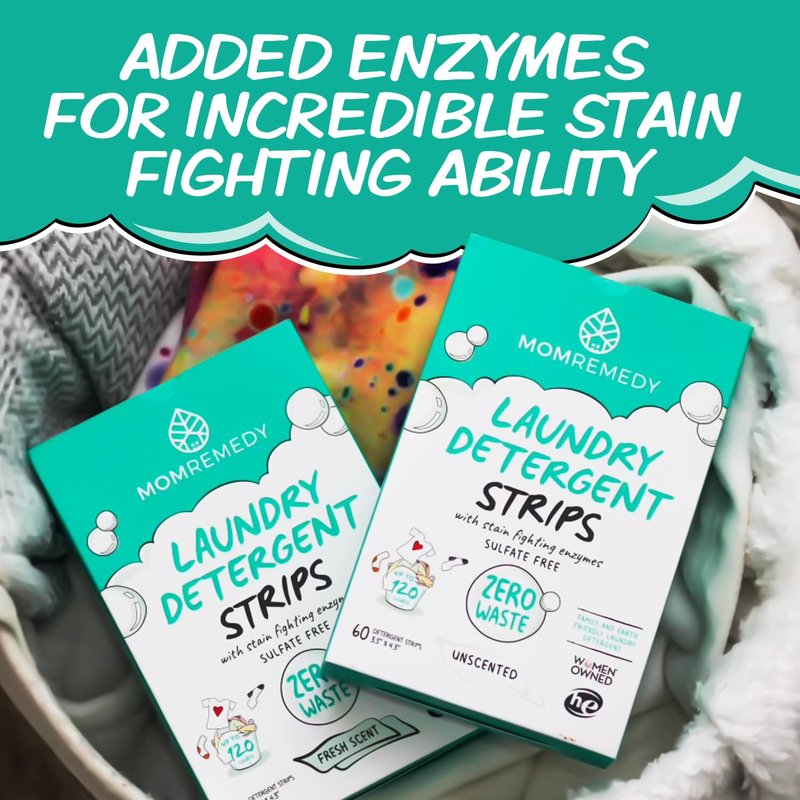 MomRemedy Laundry Detergent Sheets with Powerful Stain Fighting Enzymes - Made in EU, Sulfate Free, Zero Waste Laundry Sheets Detergent in Recyclable Packaging - Travel Friendly 60 Count (Fresh Scent)