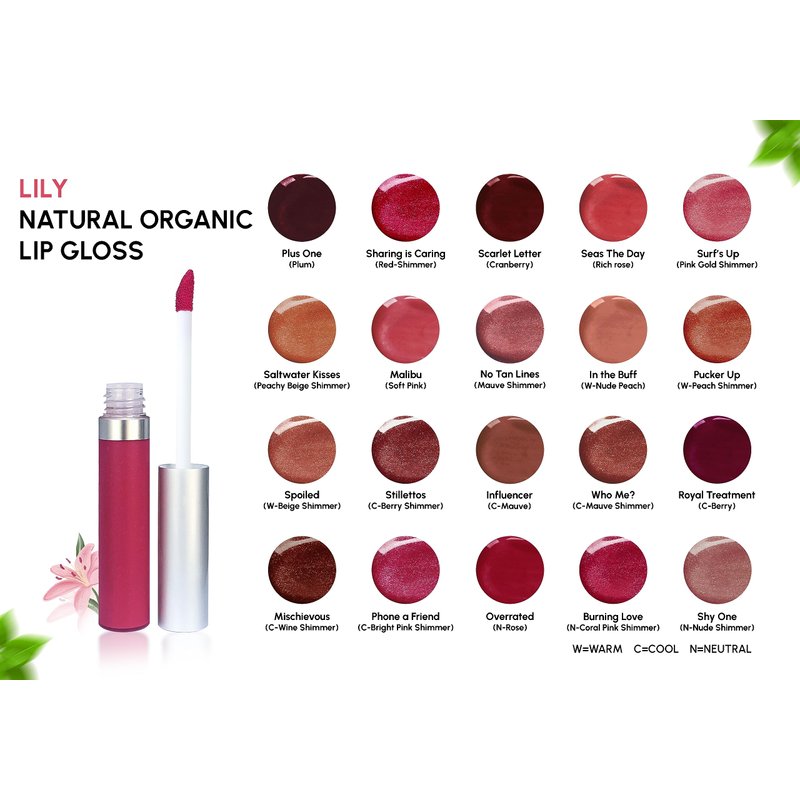 Mom's Secret Lily NATURAL Organic LIP GLOSS All natural, gluten free, paraben free lip gloss formulated with Natural and Organic ingredients to deliver the ultimate hydration. Smooth, creamy and non-sticky for semi-sheer color and sheen with a soft shiny finish.