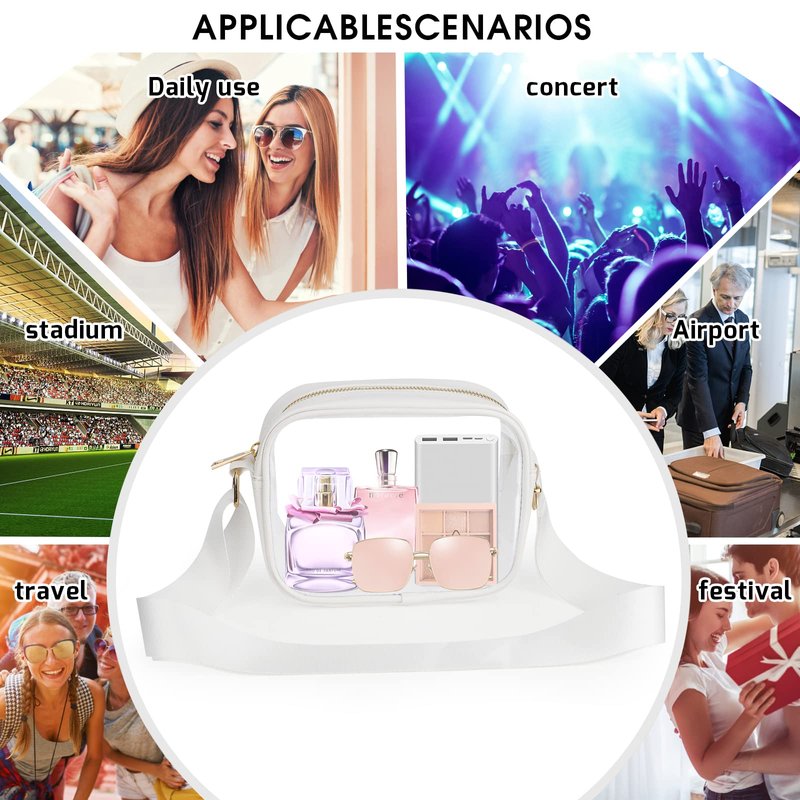 - Well-Made Waterproof Material: Our clear messenger bags are made of high-quality clear TPU material and leather, and all seams that are prone to breakage are reinforced with double stitching. Wide adjustable shoulder straps make carrying heavy loads more comfortable. Dance, cheer, and enjoy without worrying about bag quality. Perfect for stadiums, concerts, festivals, raves and any outdoor event.