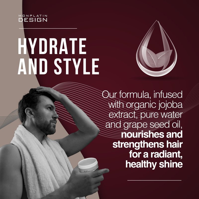 - NOURISHING TREATMENT: Say goodbye to dry, lifeless locks! Our Jojoba Hair Wax is not just your average styling product; it's a nourishing treatment that showers your hair and scalp with organic jojoba extract goodness and smells divine, it's the ideal choice for your daily styling routine. Mon Platin men’s hair wax is easy to rinse out and leaves no sticky or greasy feeling, No residue, just well managed hair.