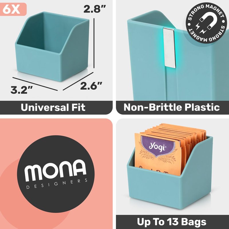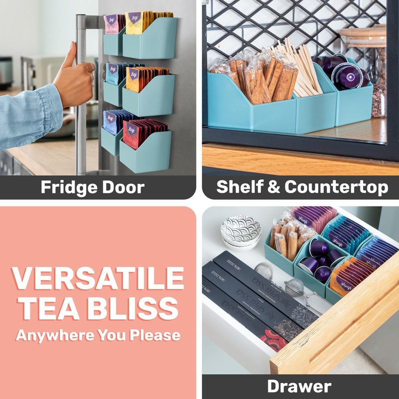 - The Ideal Tea Bag Storage Solution - Our 6 pack magnetic tea display containers are ideal for keeping your home well organized. A unique way to keep all your tea flavors conveniently on hand.