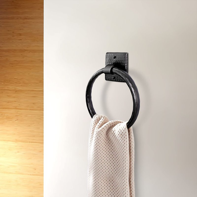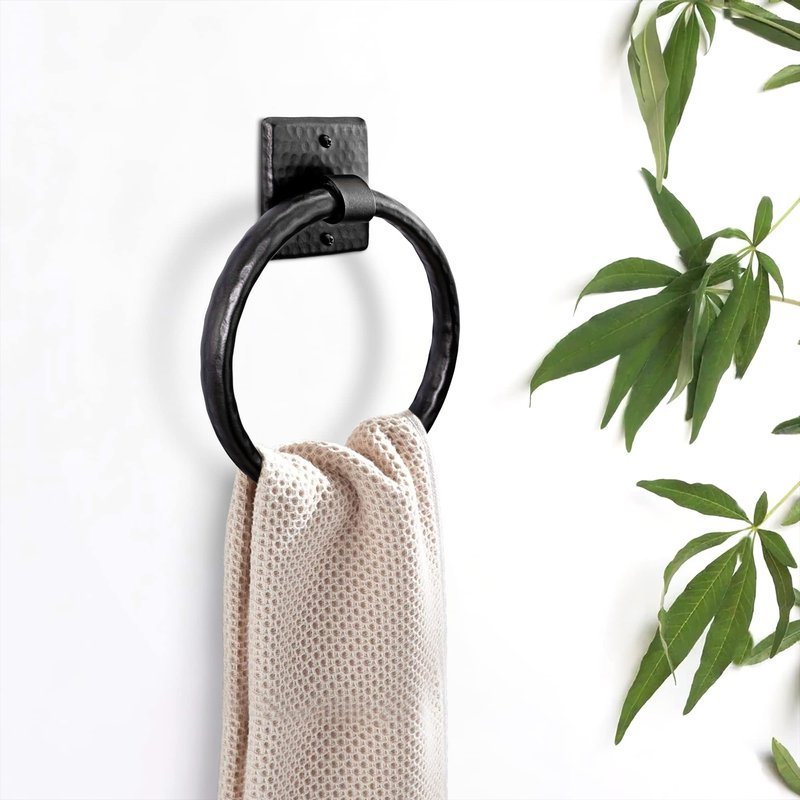 Monarch Abode 19131 Round Towel Ring Holder Hand Hammered Wall Mount Bathroom and Kitchen Storage, Metal Towel Hanger, 7 inch, Matte Black