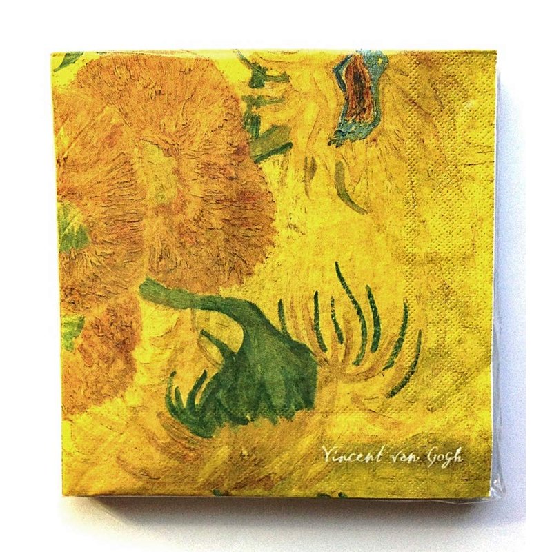 Monarque Luncheon Paper Napkins 6.5x6.5 inch folded, Pkg of 20 (Sunflowers by Van Gogh)