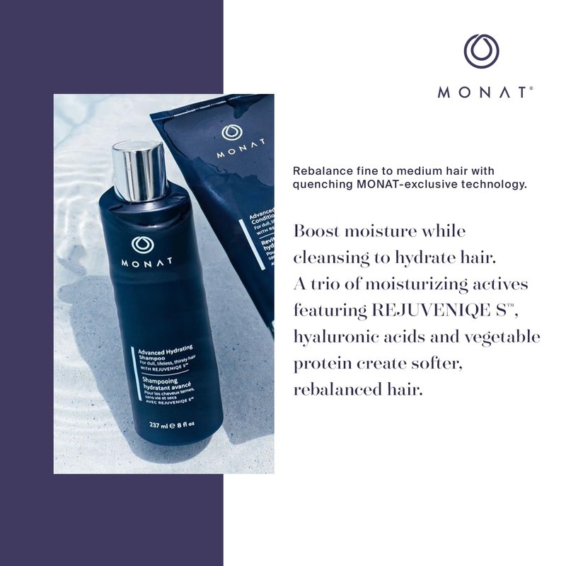 MONAT Advanced Hydrating Shampoo Infused with Rejuveniqe S - Lightweight Hair Shampoo / Moisturizing Shampoo That Nourishes Fine to Medium Hair - Net Wt. 237 ml / 8 fl. oz.
