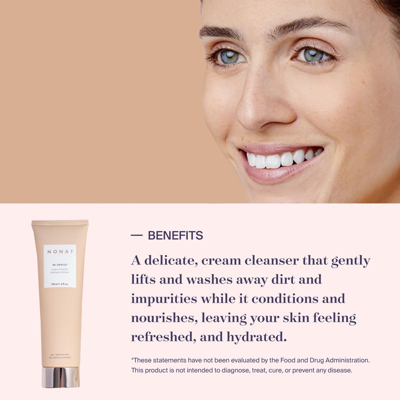 - Gentle cleansing: MONAT Be Gentle Creamy Cleanser provides a soothing and thorough cleanse without stripping the skin's natural moisture.
