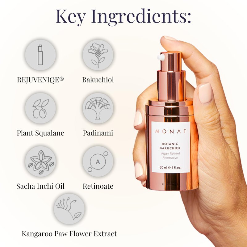 - [BOTANICAL POWER] – Embrace the benefits of nature with Monat Botanic Bakuchiol Vegan Retinol Alternative Lotion that is carefully curated with a blend of botanical actives to help address the age spots, uneven skin tone, texture, wrinkles, and fine lines.