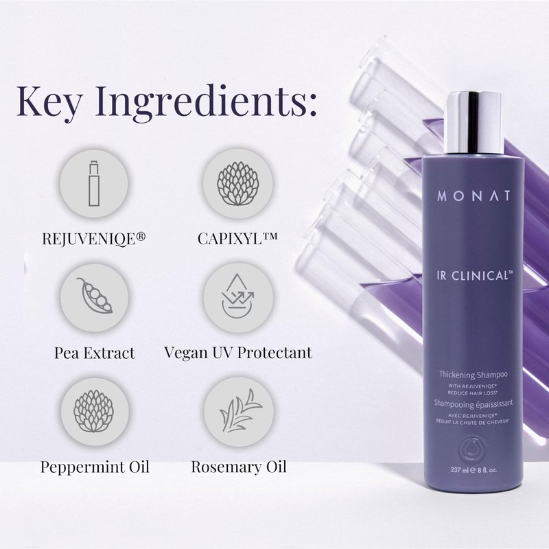 - [LUSCIOUS LOCKS] – Say goodbye to thin, lifeless hair and hello to the confidence of luxurious, thick strands with the Monat IR Clinic Thickening Shampoo! Give your daily haircare routine an upgrade and see real results with this hair-volumizing shampoo.