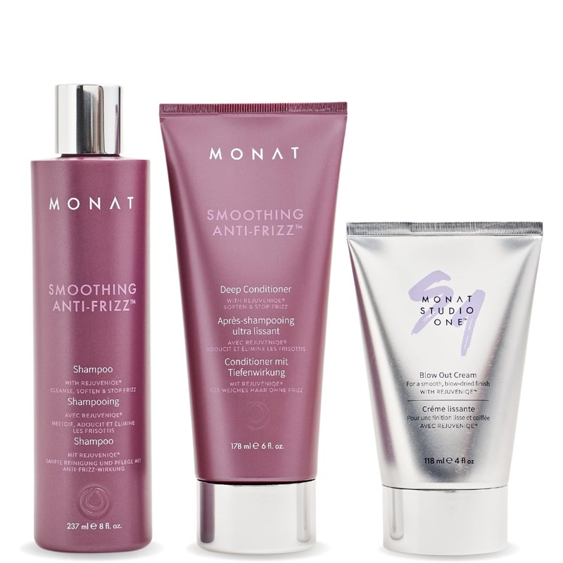 - [COMPLETE HAIR CARE PACK] – This hair treatment system includes 1xSmoothing Anti-Frizz Shampoo, 1x Smoothing Anti-Frizz Deep Intensive Treatment, and 1x MONAT STUDIO ONE Blow Out Cream to give your mane the care it deserves.