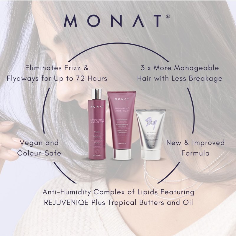 - [ULTIMATE SOFTNESS] – Achieve 5 times smoother hair that is super soft with the MONAT Smoothing Anti FrizzTM System! This three-product smoothing hair care is your go-to solution to tame unruly locks, making them frizz-free and flawless.