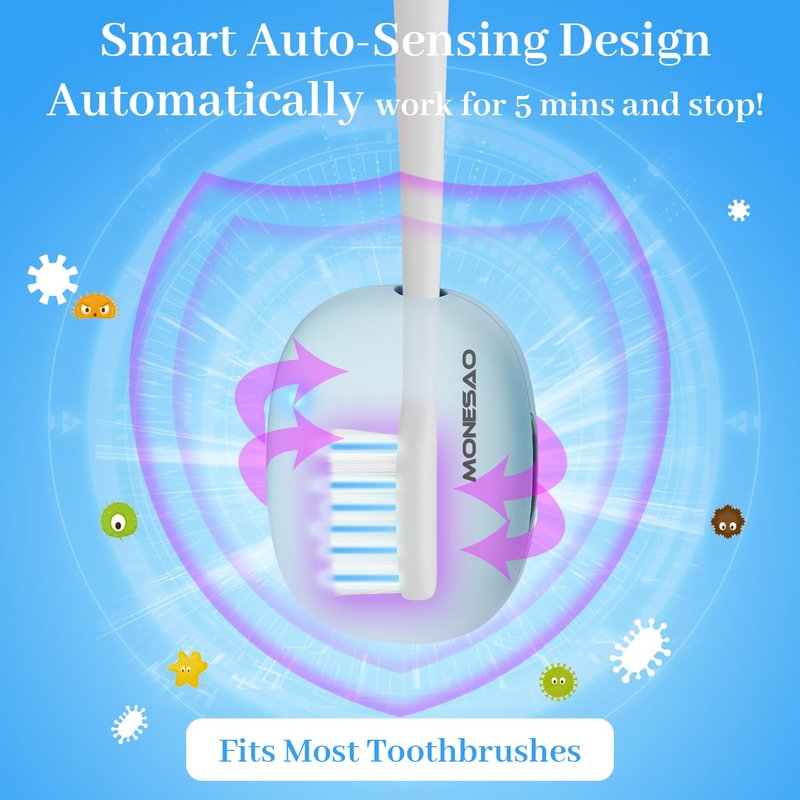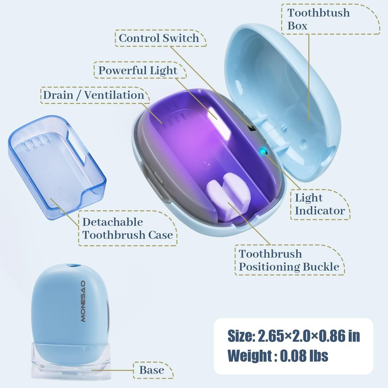 - 💙 【Toothbrush Case Effect Up to 99.9%】MONESAO toothbrush case with powerful light can deeply clean your toothbrush.Toothbrush cover can be up to 99.9% effective on your toothbrushes. The portable toothbrush travel case effectively keeps your toothbrushes clean at all times.Toothbrush covers clean and tidy, and it's like having a new toothbrush every day.