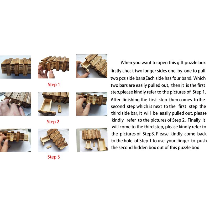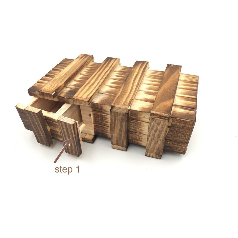 You just need to find out a piece of the wood which is suttled on side of the box, and pull it.