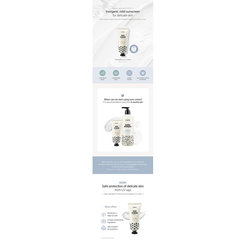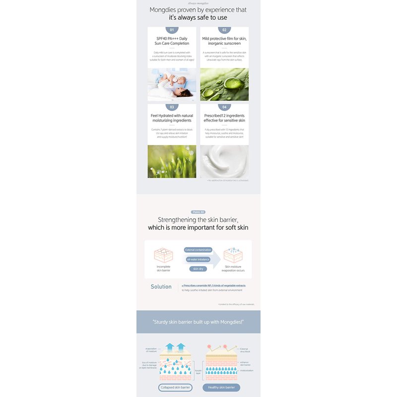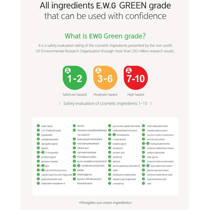 Mongdies Baby Sun Cream SPF30 PA+++ -100% SAFE Moist and Gentle Inorganic Sunscreen, EWG Green level Ingredients, Contains plant-derived extracts and plenty of deep ocean water- 60ml