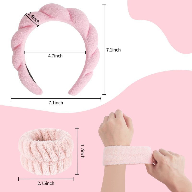- 🎀【High Quality Materials】Our spa headband is mainly made of sponge and terry cloth fabric.It's super soft and comfortable to wear. The sponge lining makes it super absorbent and can prevent your hair from getting wet when washing your face.The wristband is made of quality coral fleece.The face wash headband does not damage the scalp and will not be uncomfortable to wear all day.