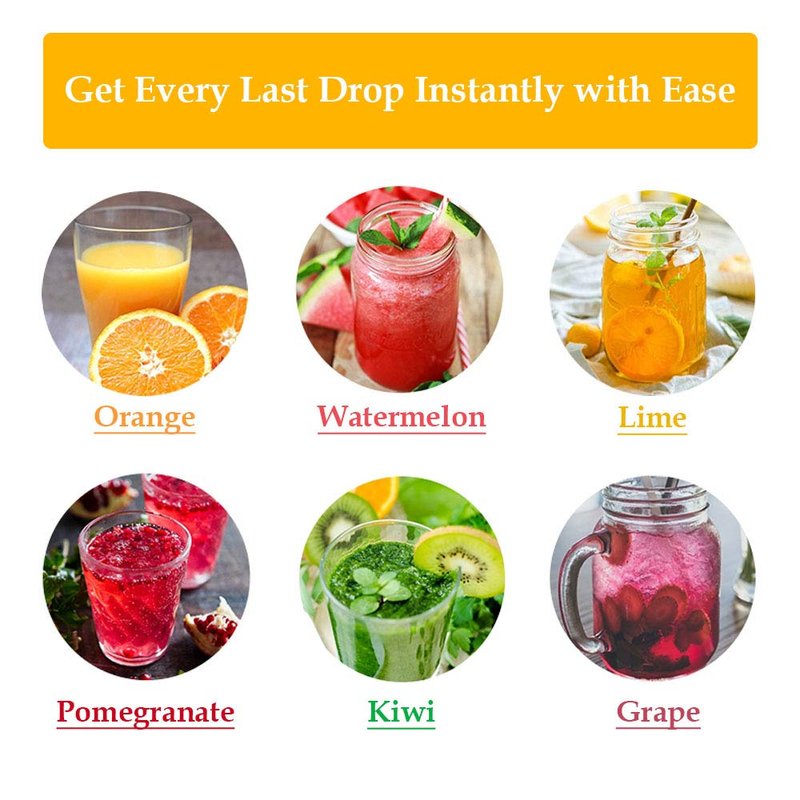 - 🍋【Widely used & Multi-Function】With a big size bowl to hold and squeeze all kinds of fruits:lemon, orange, lime, citrus, easily juice the original flavor, enjoy high-quality nutrition life. And it is suitable for all you need: pair with meat, mixed with vegetables, bartending, direct drinking or cooking.