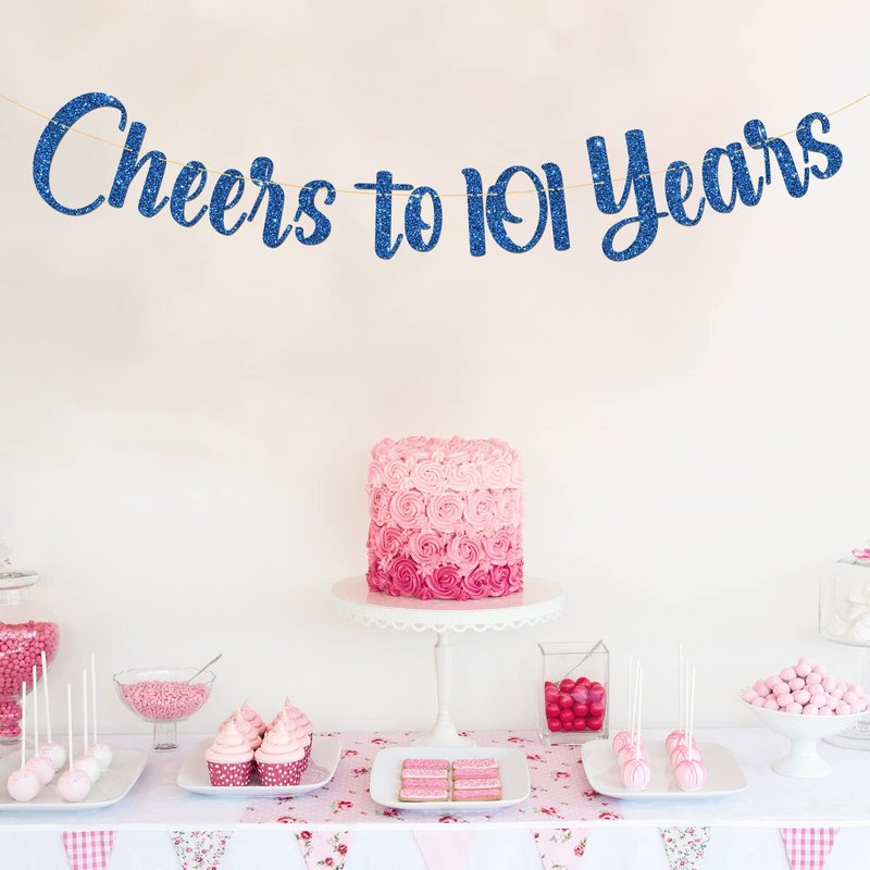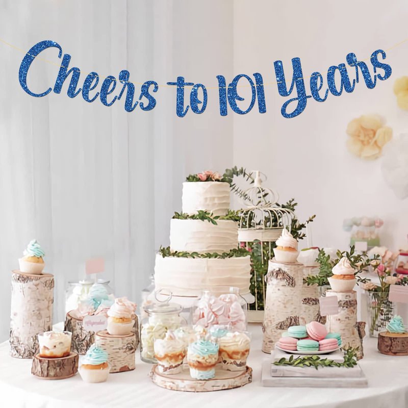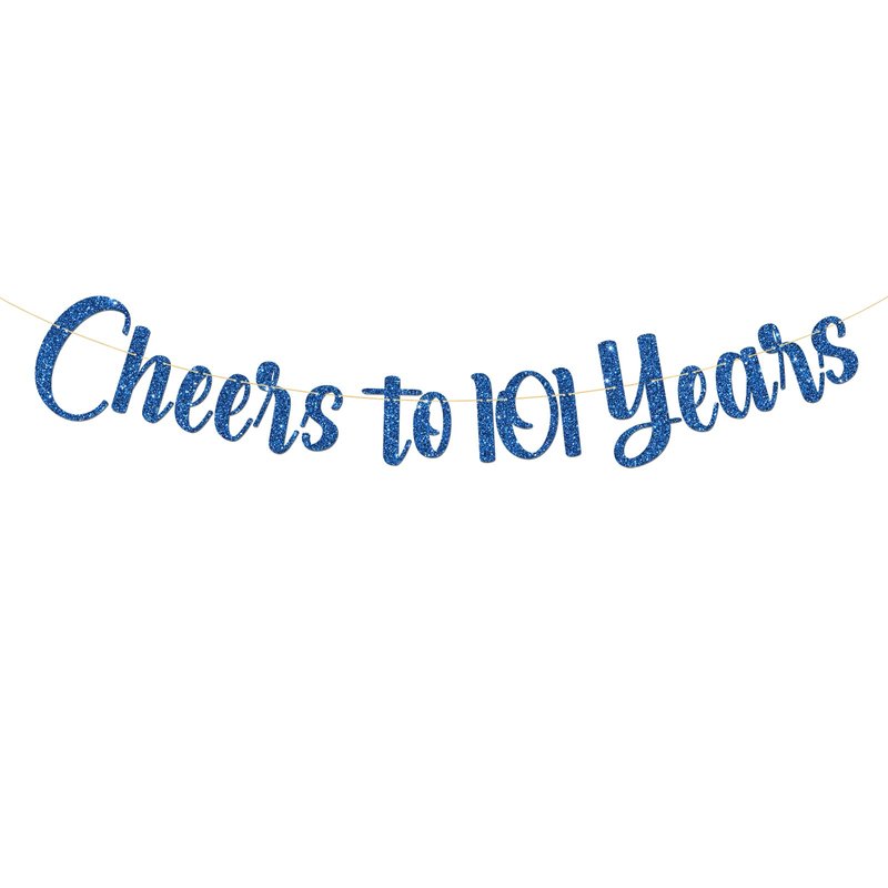 MonMon & Craft Cheers to 101 Years Banner/Women Men 101st Birthday Banner/Happy 101st Wedding Annviersary / 101st Birtdhay Party Decorations - Blue Glitter (101)
