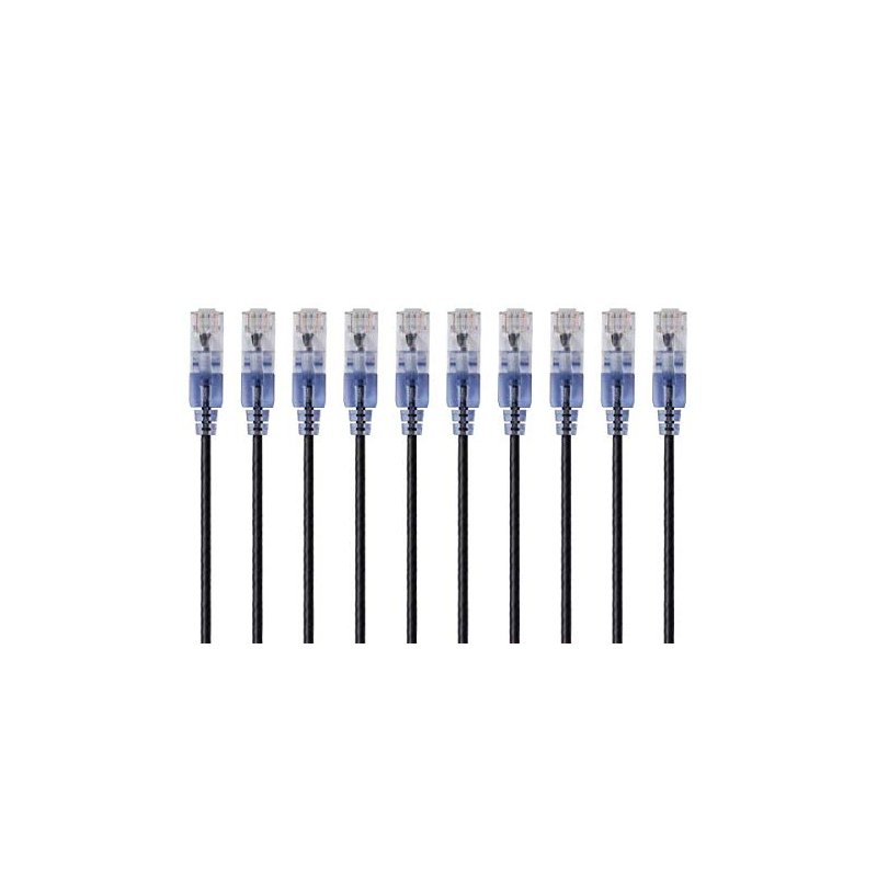 Monoprice Cat6A Ethernet Patch Cable - Snagless RJ45, 550Mhz, 10G, UTP, Pure Bare Copper Wire, 30AWG, 10-Pack, 1 Feet, Black - SlimRun Series