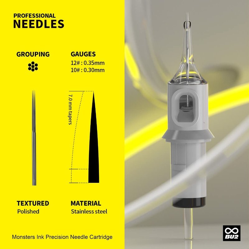 Introducing Monsters Ink Precision Tattoo Needle Cartridges - the ultimate solution for professional tattoo artists looking to take their art to the next level! Crafted with precision and care, these high-quality cartridges are designed to provide superior performance and outstanding results every time. Made from the finest materials, Monsters Ink Precision Tattoo Needle Cartridges are built to last, ensuring that you can create stunning tattoos with ease and confidence. With a unique design that allows for easy and secure installation, these cartridges are perfect for artists of all levels, from beginners to seasoned veterans. Featuring a wide range of needle configurations, including liners, shaders, and magnums, Monsters Ink Precision Tattoo Needle Cartridges provide the versatility you need to create a wide range of designs and styles. Whether you're creating bold lines, smooth shading, or intricate details, these cartridges deliver unbeatable precision and control, allowing you to achieve the exact results you're looking for. And with a convenient, hygienic disposable design, you can ensure that your clients receive the safest and most sanitary tattooing experience possible. So if you're looking for the ultimate in quality, performance, and versatility, look no further than Monsters Ink Precision Tattoo Needle Cartridges. Try them today and see the difference for yourself!