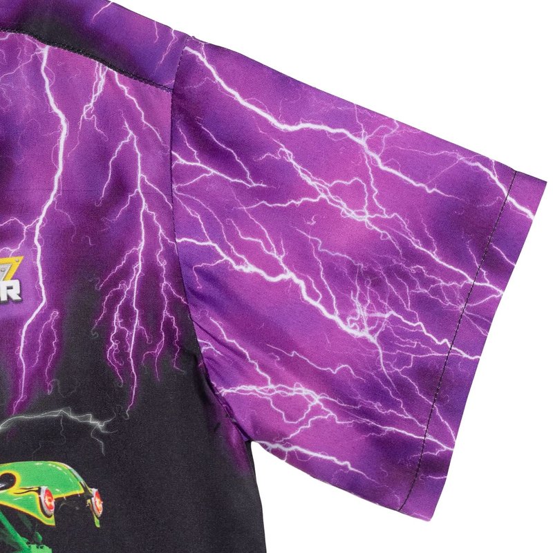 Monster Jam Trucks Grave Digger Toddler Boys Hawaiian Button Down Shirt Purple/Green 4T