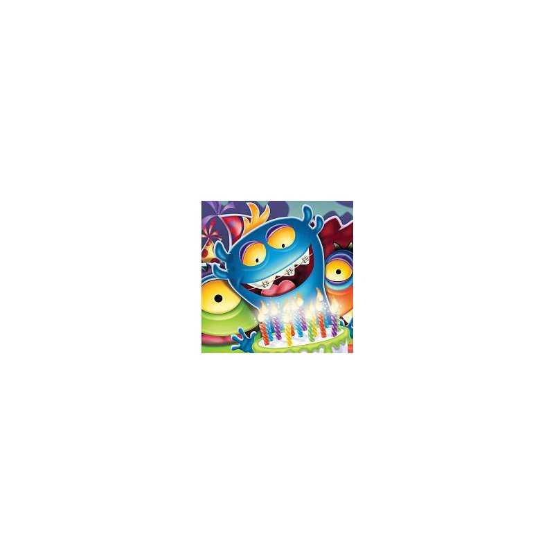 Monster Mania Beverage Napkins feature a not so scary monster with braces blowing out it's birthday candles. The 2 ply paper Monster Mania party napkins come in packages of sixteen and measure approximately 5 /12 inches square. Use the brightly colored Monster Mania Beverage Napkins to give your monster themed table a freakishly fun mix of happy monsters. These fun party napkins will coordinate wonderfully with all our Monster Mania Party Supplies.