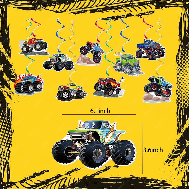 Monster Truck birthday Decorations Party Supplies include 2Pcs Tableclothes,Birthday Banner,Hanging Swirls,Stickers &Garland (Monstertruck)