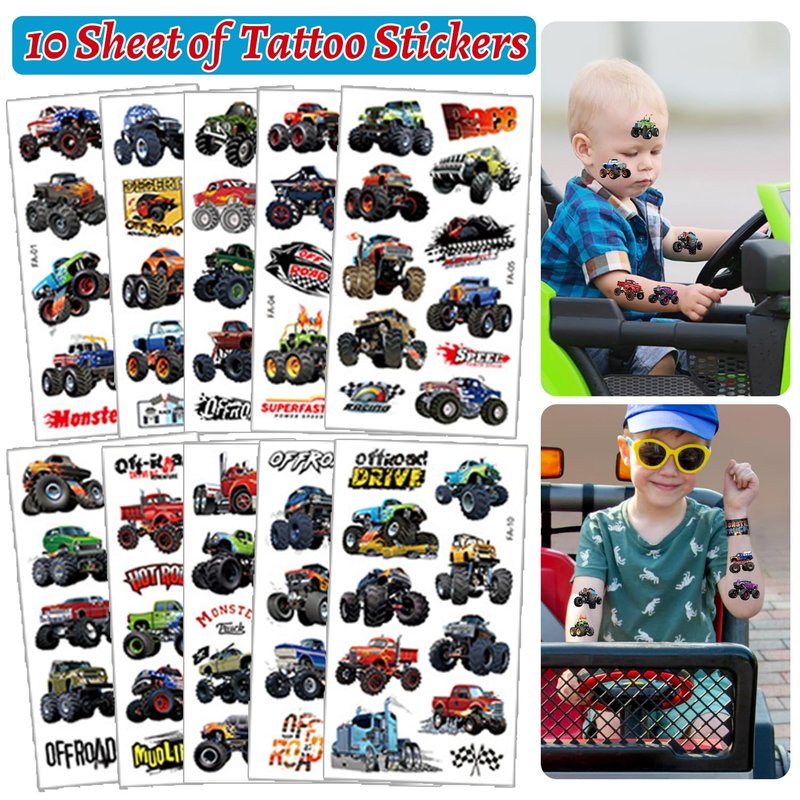 - 【Monster Truck Stickers Tattoos】The monster truck stickers can be applied to laptops, backpacks, desks, suitcases, books, water cups, and more, which will surely elevate your visual experience and bring a touch of joy to everyday items. The monster truck tattoos can be applied to hands, face, arms or wherever you feel safe, and can directly touch your skin without any discomfort. They all have a good stickiness, so that they are not easy to fall off.