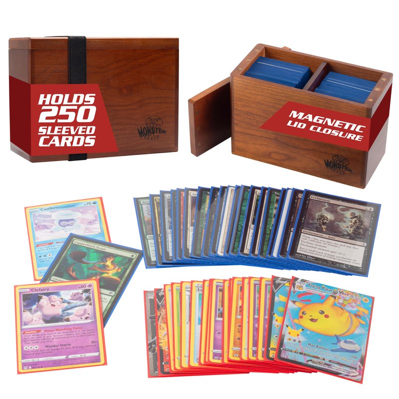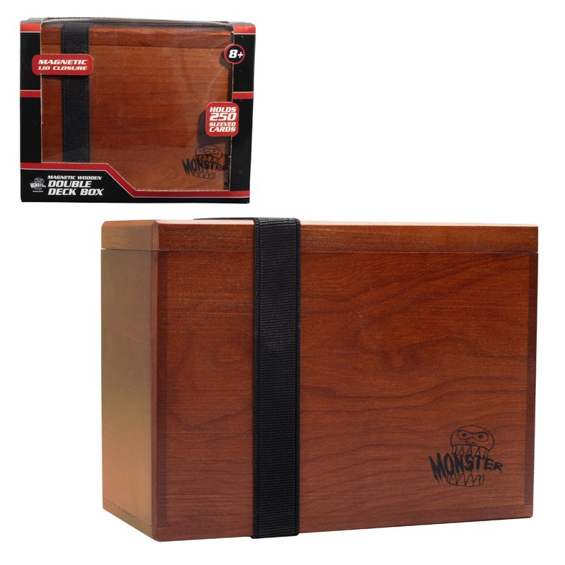 Monster Wooden Double Deck Box w Strong Magnetic Lid & Security Band- Premium Holds 250 Sleeved Cards- Compatible w Pokemon, Yugioh, Commander Magic the Gathering MTG & All Trading TCG Game, Xmas Gift