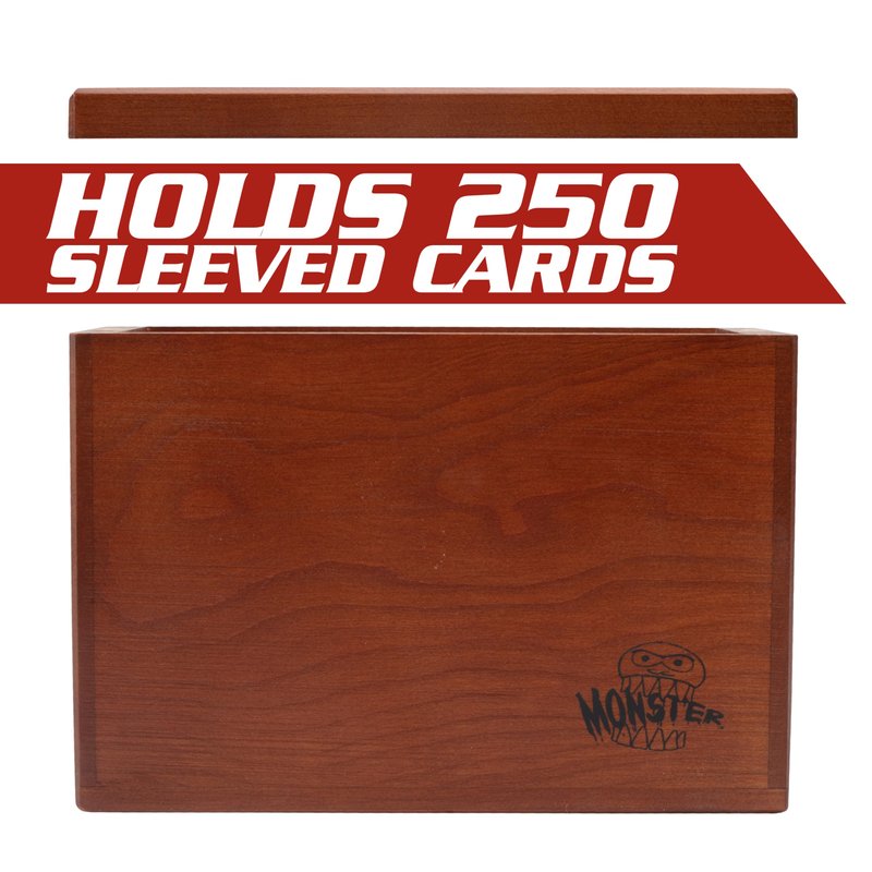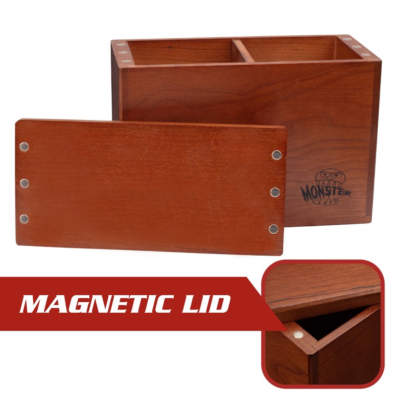 The Monster Magnetic Wooden Double Deck Box in Cherry is Compatible with Yugioh, Magic the Gathering MTG, Sports Cards and other trading and collectible TCGs. Keep your collection Safe and Secure in this beautiful wooden deck box.
