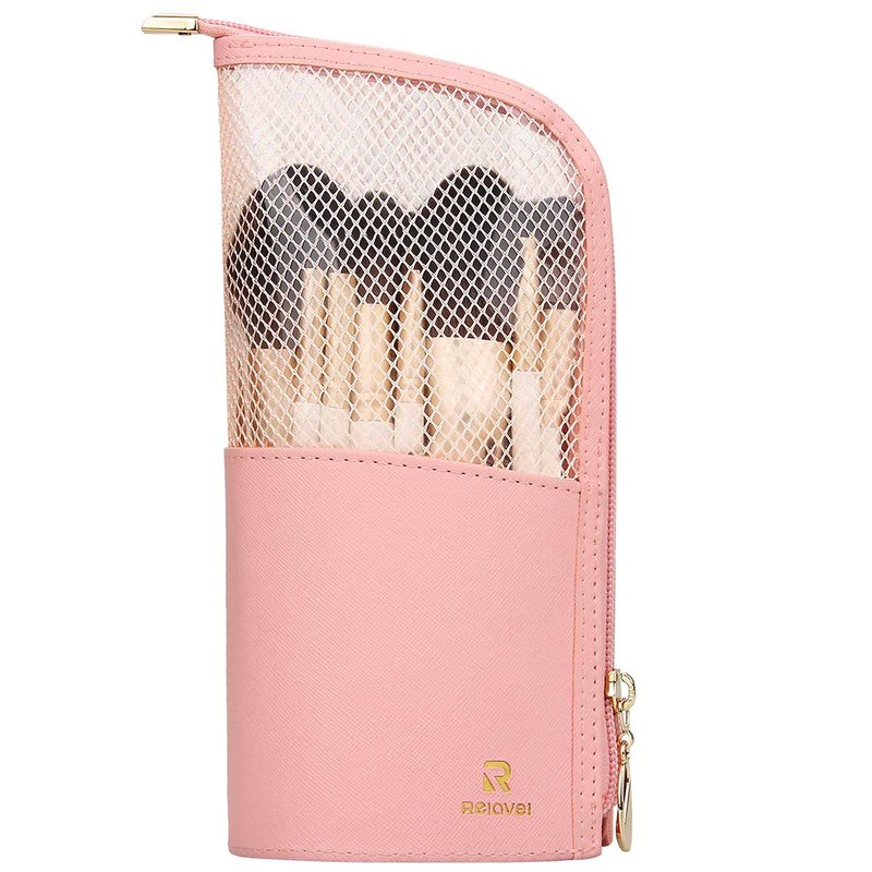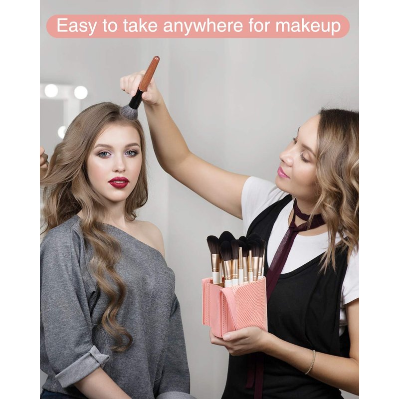- MAKEUP BRUSH HOLDER BAG: Holds assorted sized brush easily. It stands on its own for easy access to the brushes. You just fold down the top and grab the brush you need.