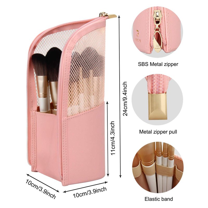 MONSTINA Makeup Brush Holder Professional Cosmetic Makeup Brush Organizer Stand-up Makeup Cup Makeup Artist Case (Pink)