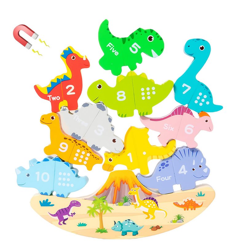 Used for both fun and learning, this toy allows kids to explore dinosaurs, improve number recognition, and develop problem-solving skills. The balancing stack play and magnetic assembly cause excitement while encouraging focus and patience.